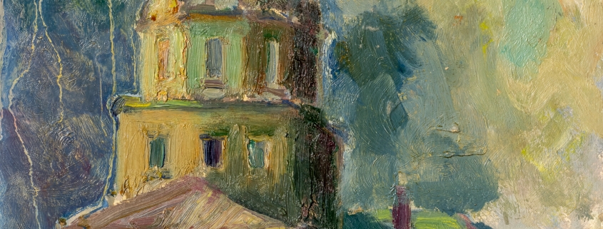iskolás évek: 1955-65, karton, olaj, tájkép, templom1963 körül, Moszkva