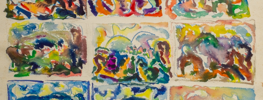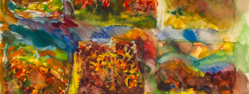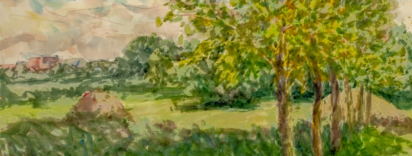 akvarell, egyetemi évek: 1965-70, padolszki táj, papír, tájkép1968 körül, Moszkva