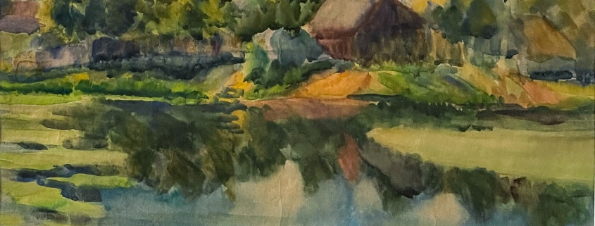 akvarell, egyetemi évek: 1965-70, padolszki táj, papír, tájkép1968 körül, Moszkva